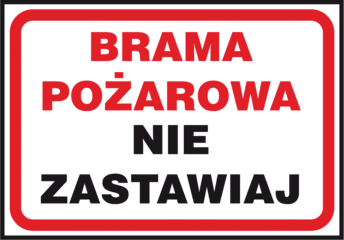 Znak ochrony ppoż. „Brama pożarowa nie zastawiaj”.